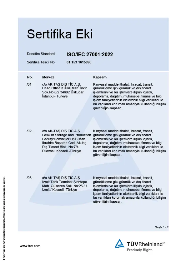 AK-TAŞ ISO/IEC 27001:2022 Sertifika Eki