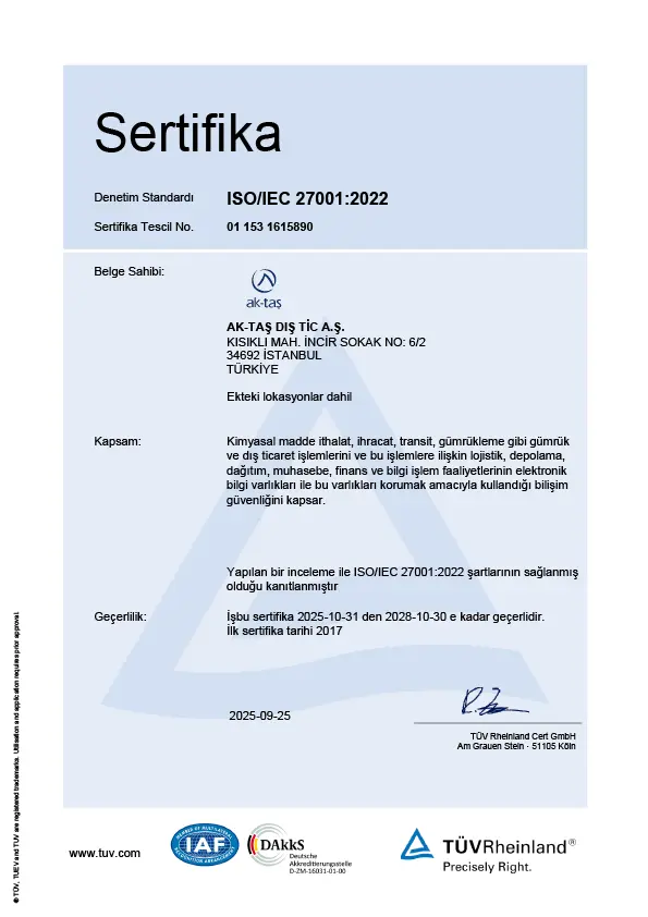 AK-TAŞ ISO/IEC 27001:2022 Sertifikası
